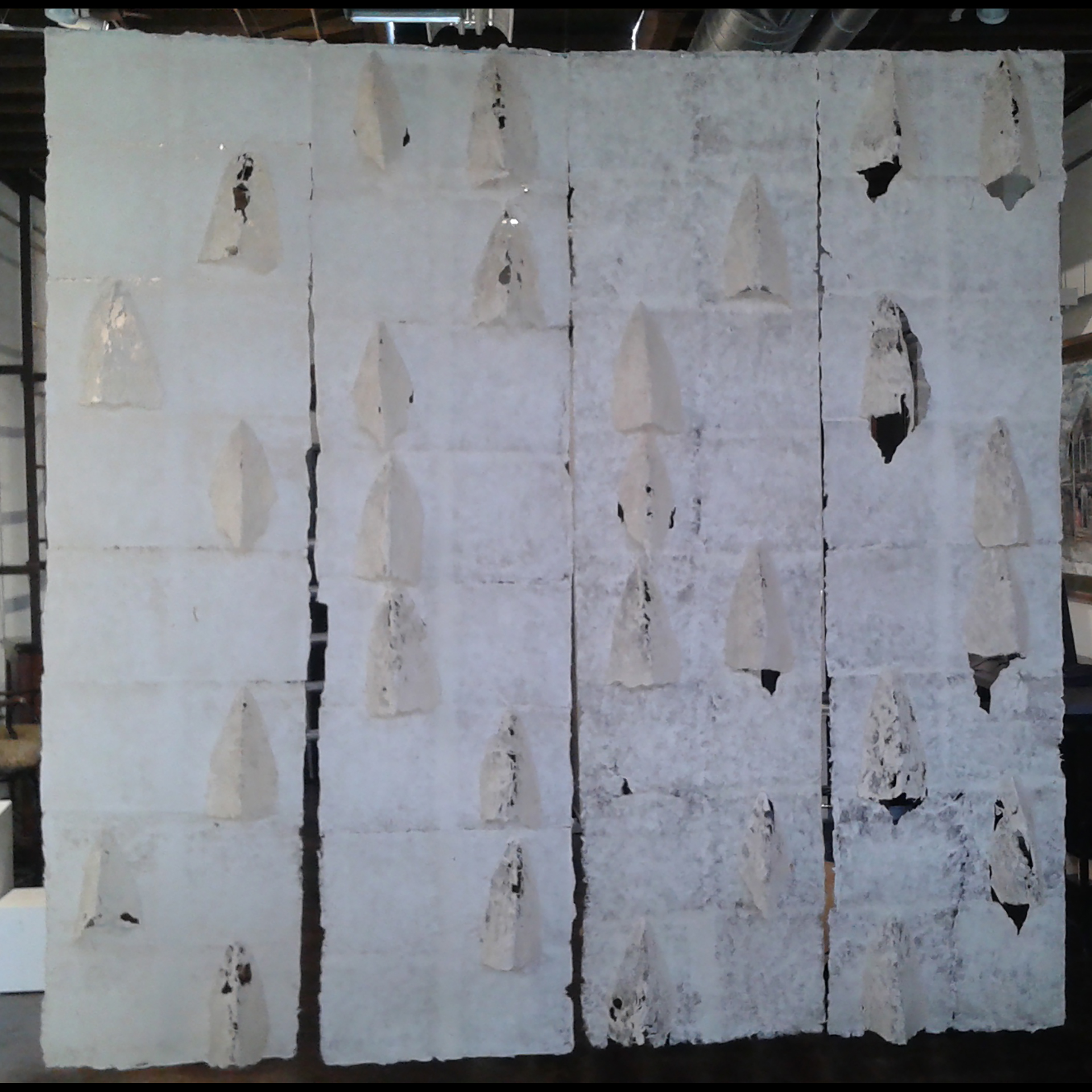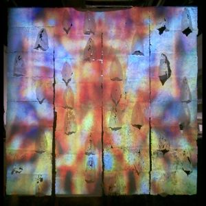 I am interested in creating challenging experiences that allow paper to emerge as more than its traditional and commercial purposes; and also challenge myself to create installations tailored to fascinating open spaces. I am creating a new series of installations inspired by the tension and seduction in nature between organic and natural geometric shapes. I want to explore being captivated by how we experience the playful interaction of light and color in nature; whether it plant, animal, or mineral. These installations are combinations of hard and soft made from bark based paper, resin, and laser cut acrylic. The Japanese Kozo fiber is an inner bark of such high quality that it allows me to create cocoon like sculptures with translucent yet incredibly strong results. My installations tend to focus on the positive and negative space between layers; while also playing with the way light, color, and reflection are experienced off a variety of tactile surfaces. The ambiguous shapes and translucent cocoon effect accentuates the way particular components will sway slightly with the natural air current of any given space, creating a completely different experience every time you walk around it. Much in the same way you experience a walk through a canopy of trees on a beautiful sunny day; my hope is to curate a similar experience through the paper layers, the play of light, and positive-negative space.